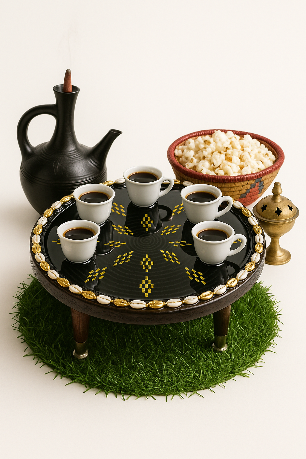 Handcrafted Ethiopian Rekebot – Black & Gold Petal Design